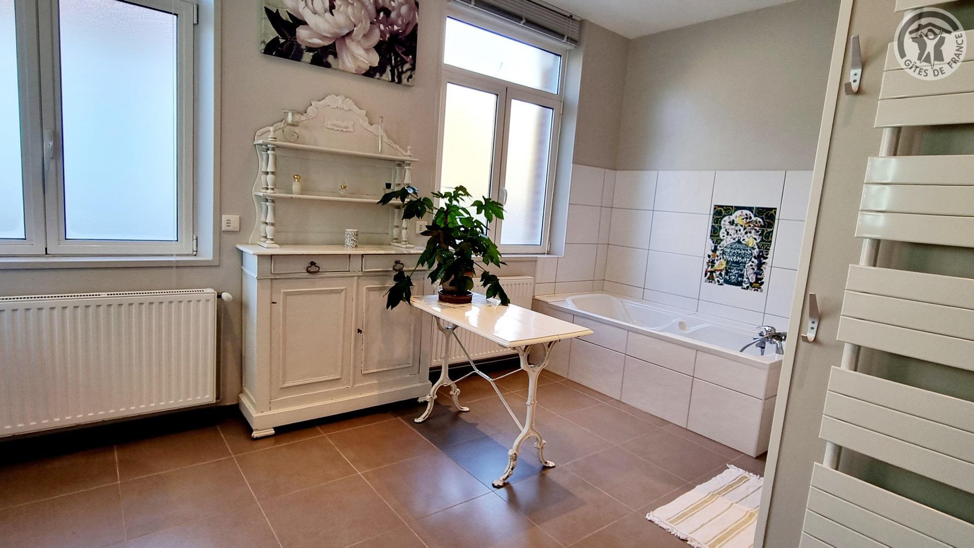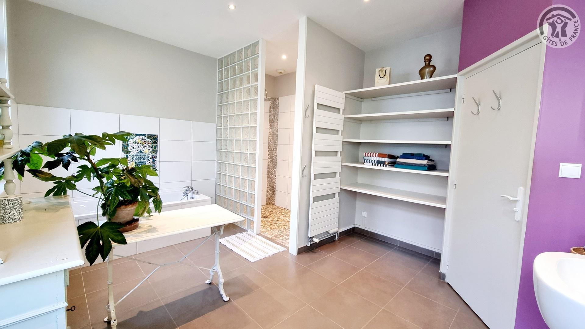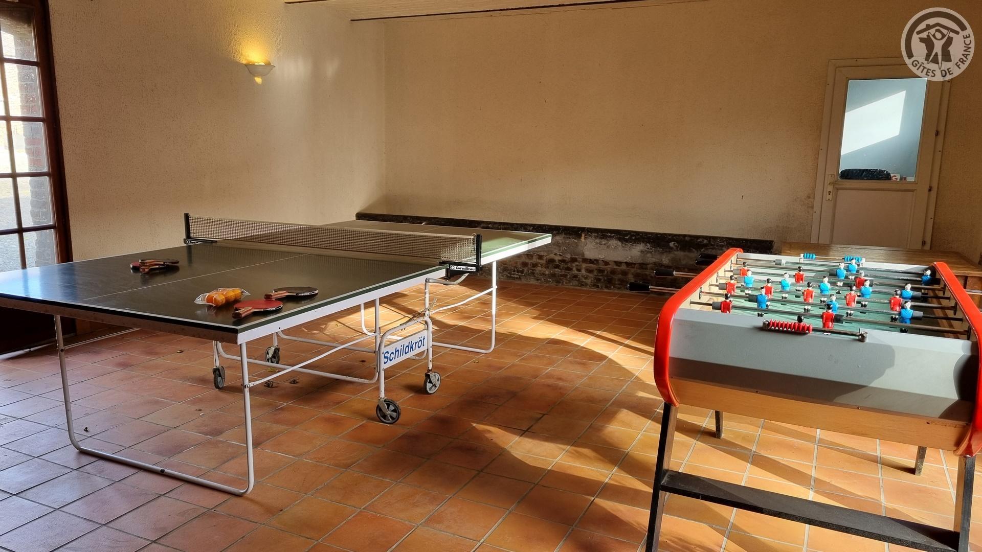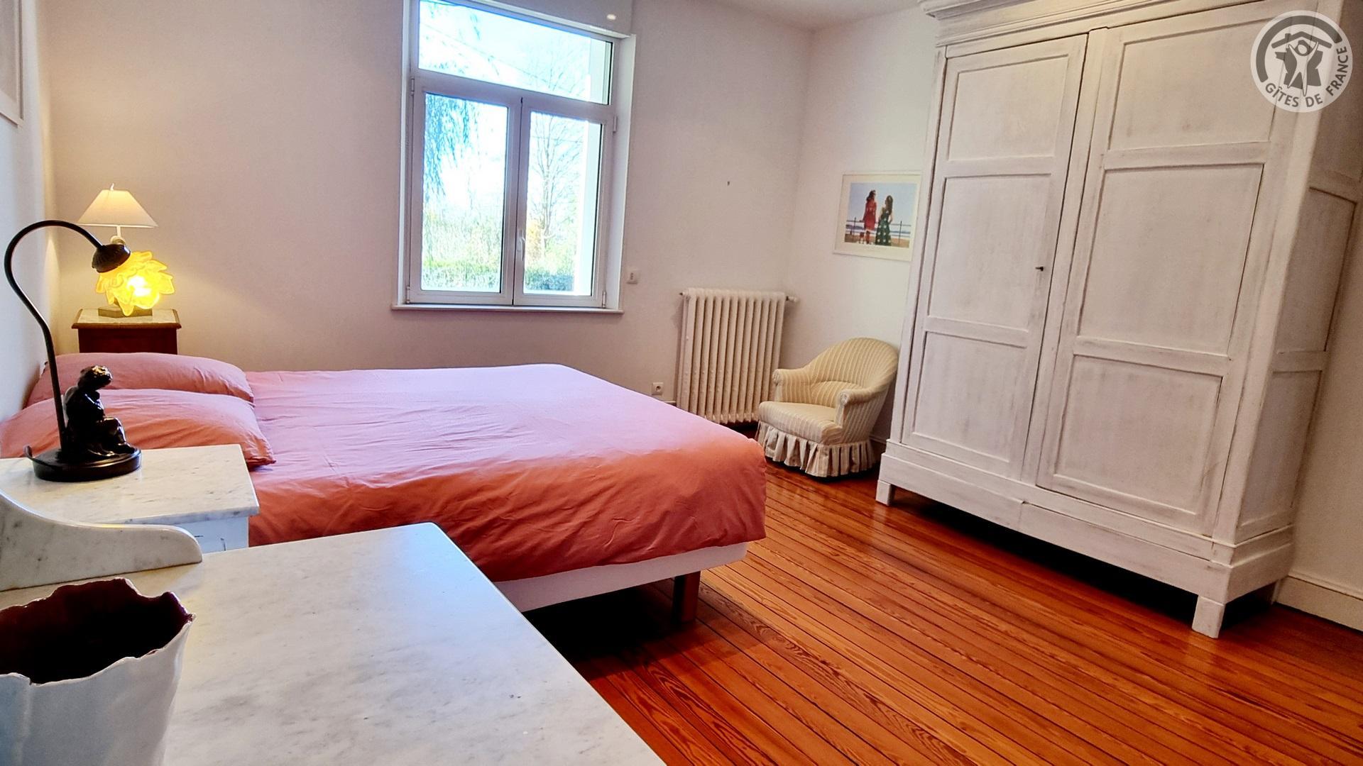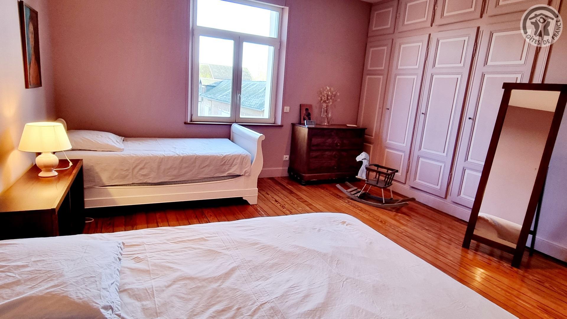Maison située dans un corps de ferme, à 600 mètres du centre du village. Rez-de-chaussée : salon avec cheminée à insert et TV connectée, salle à manger et cuisine moderne toute équipée. Salle de bains (douche italienne en 2m x1,20m, baignoire et 2 lavabos), une chambre avec 2 lits en 90x190cm et un WC indépendant avec lave-mains. Buanderie avec lave-linge et sèche-linge. Étage : 5 chambres dont deux avec chacune un lit en 160x200cm et un lit en 90x190cm, une avec un lit en 140x190cm, une avec un lit en 160x200cm et une avec un lit en 90x190cm. Salle d'eau (cabine de douche en 80x80cm, une vasque et un WC). Terrasse en bois de 30 m² avec salon de jardin et barbecue au charbon et plancha/barbecue au gaz. Jardin privatif de 190 m². Salle de jeux à quelques mètres dans un des bâtiments du corps de ferme avec table de ping-pong et baby-foot. Équipements bébé à disposition. Wifi. Gîte en tout inclus (charges, ménage, draps et linge de toilette compris dans le prix).