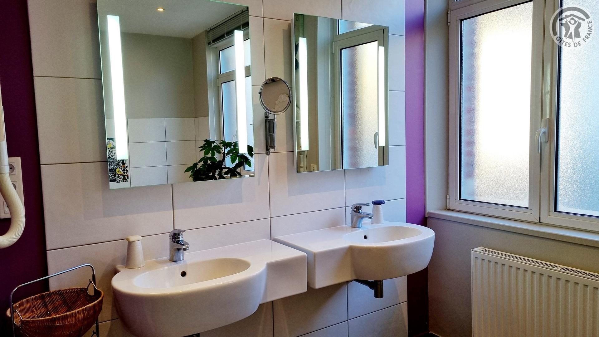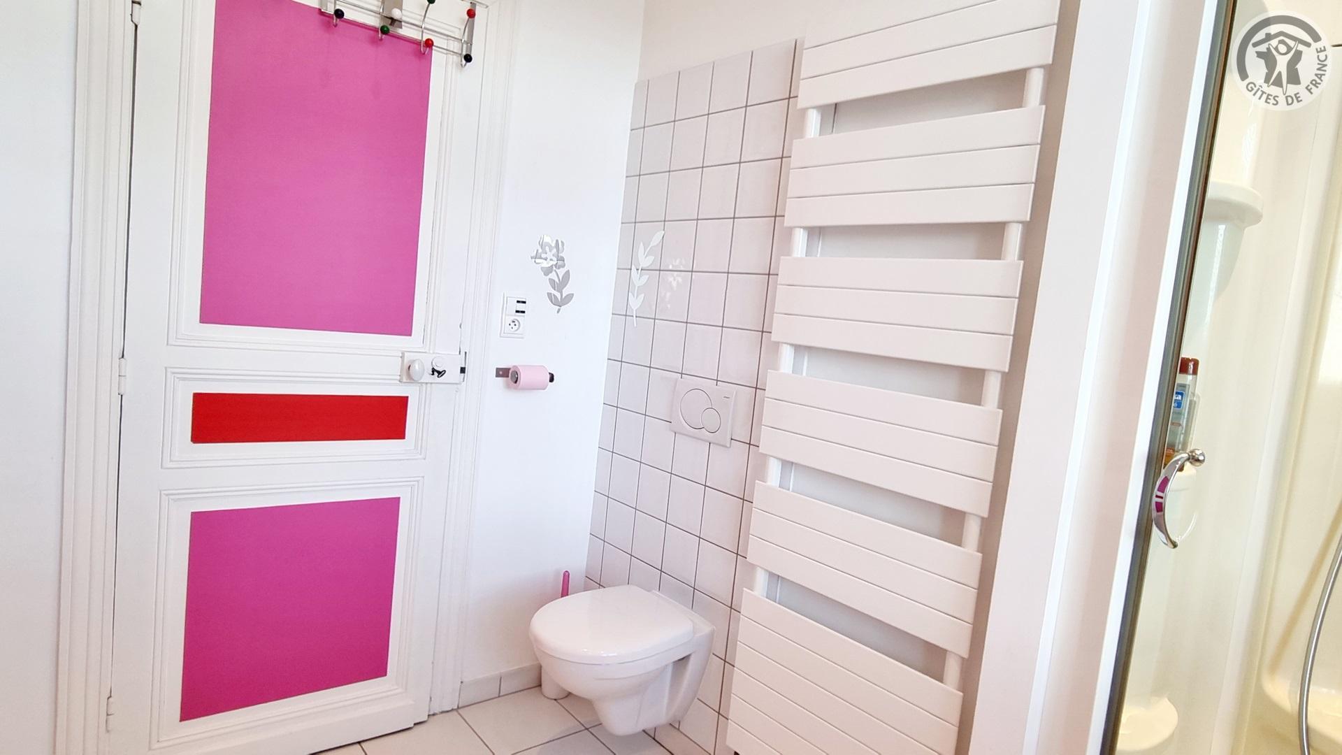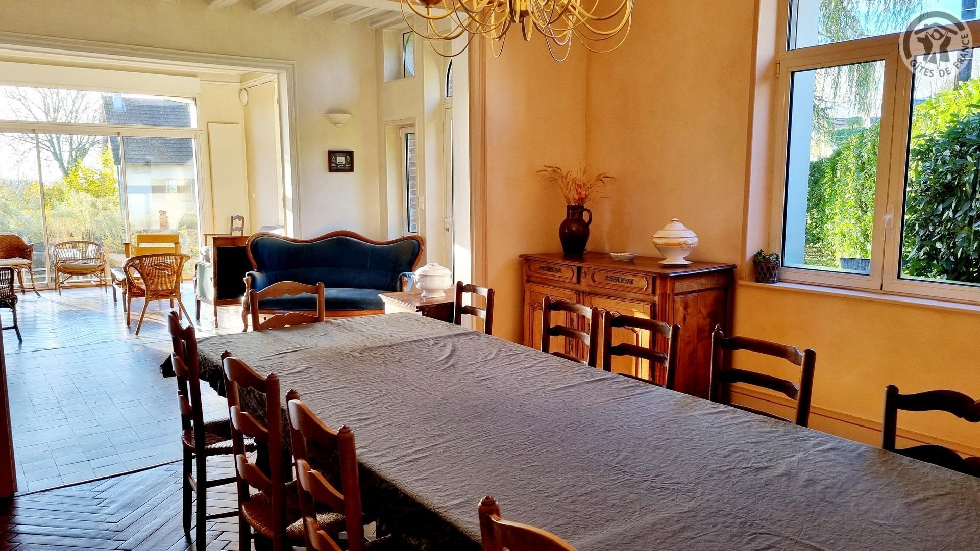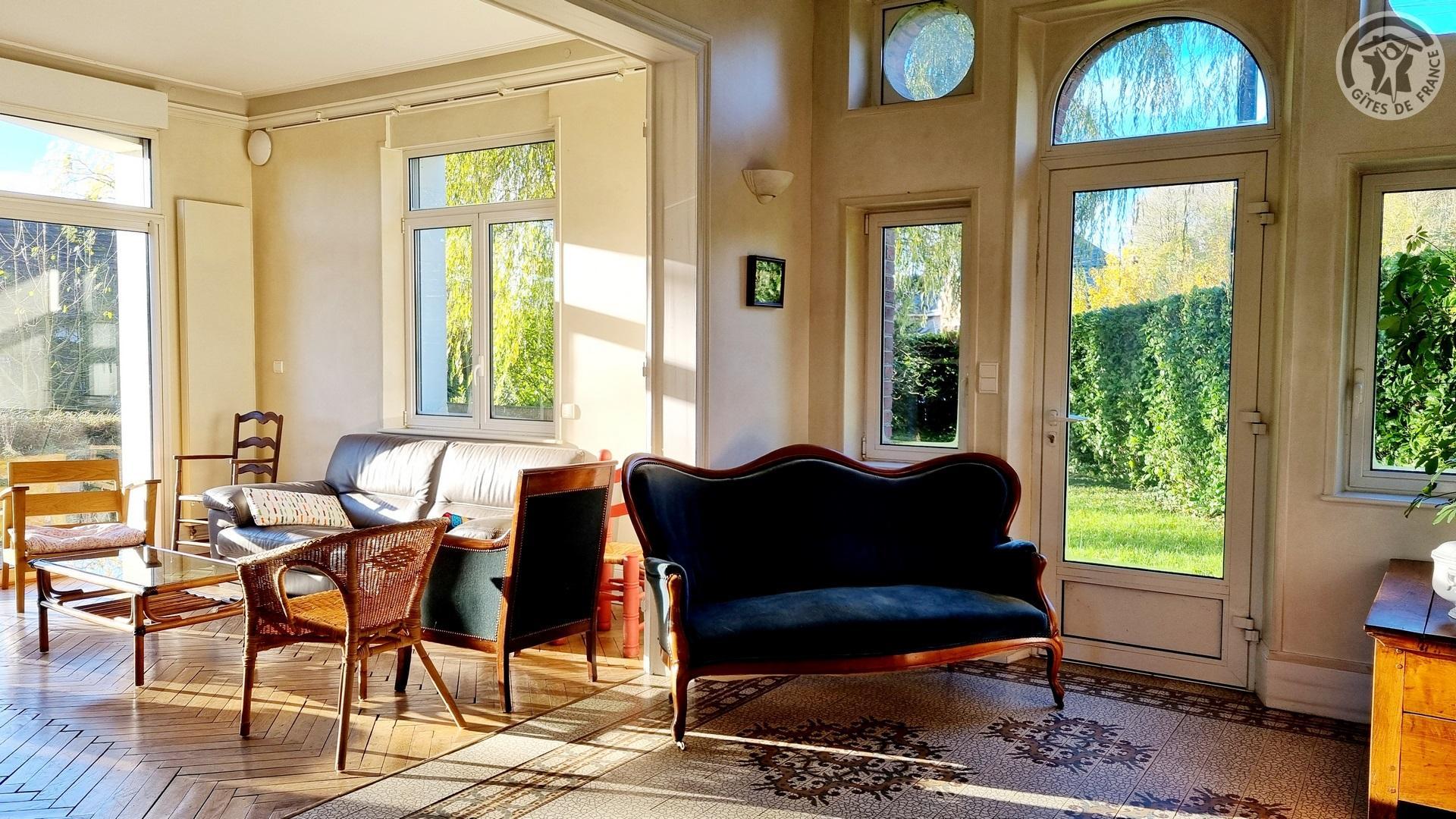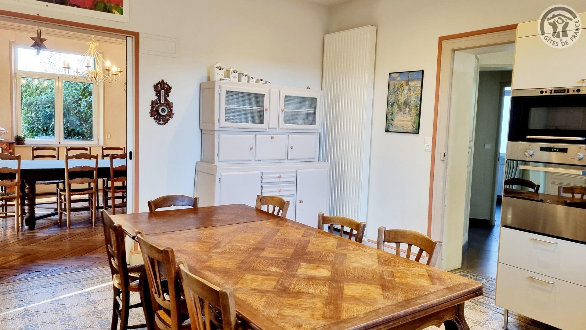 Maison située dans un corps de ferme, à 600 mètres du centre du village. Rez-de-chaussée : salon avec cheminée à insert et TV connectée, salle à manger et cuisine moderne toute équipée. Salle de bains (douche italienne en 2m x1,20m, baignoire et 2 lavabos), une chambre avec 2 lits en 90x190cm et un WC indépendant avec lave-mains. Buanderie avec lave-linge et sèche-linge. Étage : 5 chambres dont deux avec chacune un lit en 160x200cm et un lit en 90x190cm, une avec un lit en 140x190cm, une avec un lit en 160x200cm et une avec un lit en 90x190cm. Salle d'eau (cabine de douche en 80x80cm, une vasque et un WC). Terrasse en bois de 30 m² avec salon de jardin et barbecue au charbon et plancha/barbecue au gaz. Jardin privatif de 190 m². Salle de jeux à quelques mètres dans un des bâtiments du corps de ferme avec table de ping-pong et baby-foot. Équipements bébé à disposition. Wifi. Gîte en tout inclus (charges, ménage, draps et linge de toilette compris dans le prix).