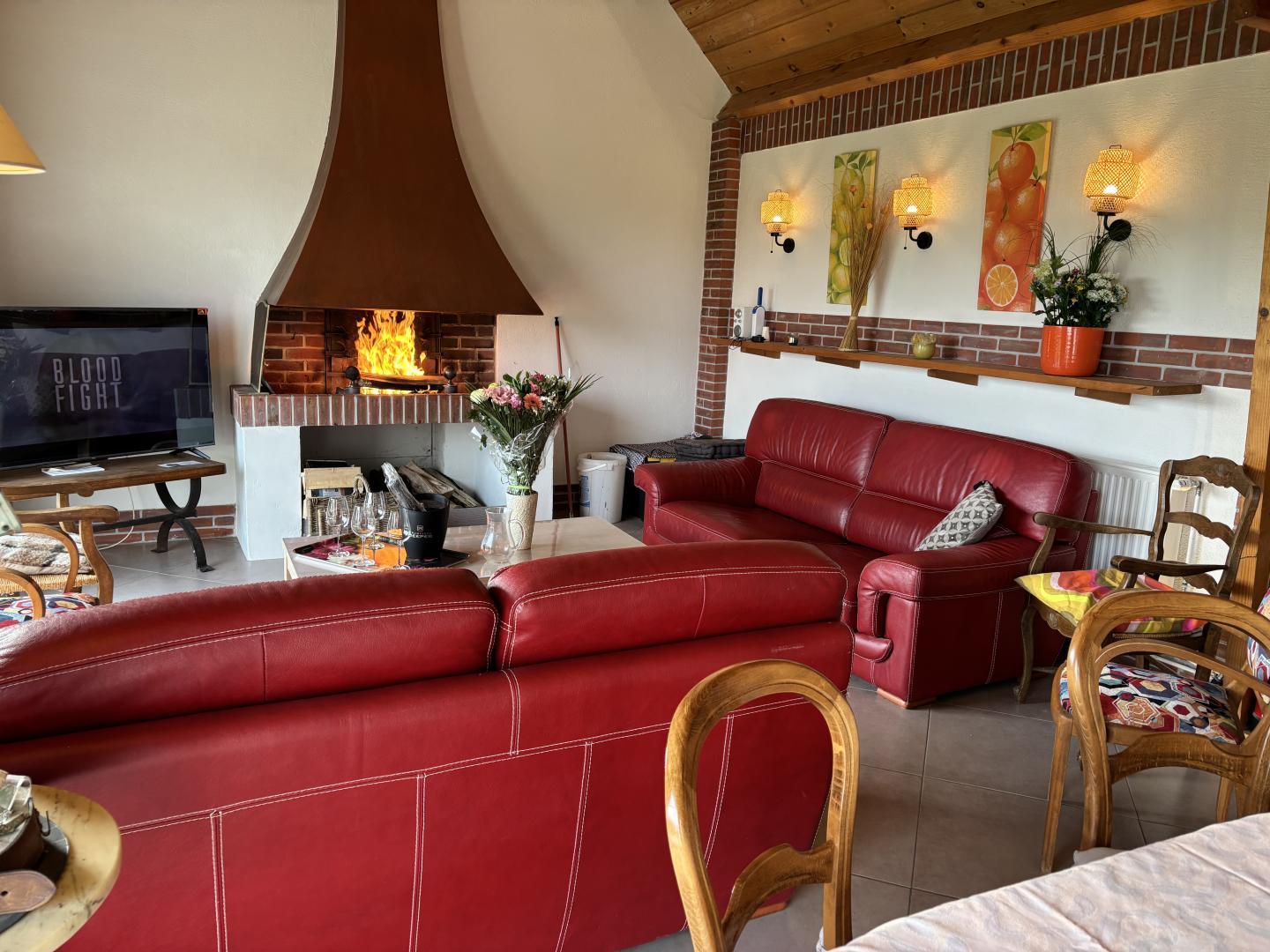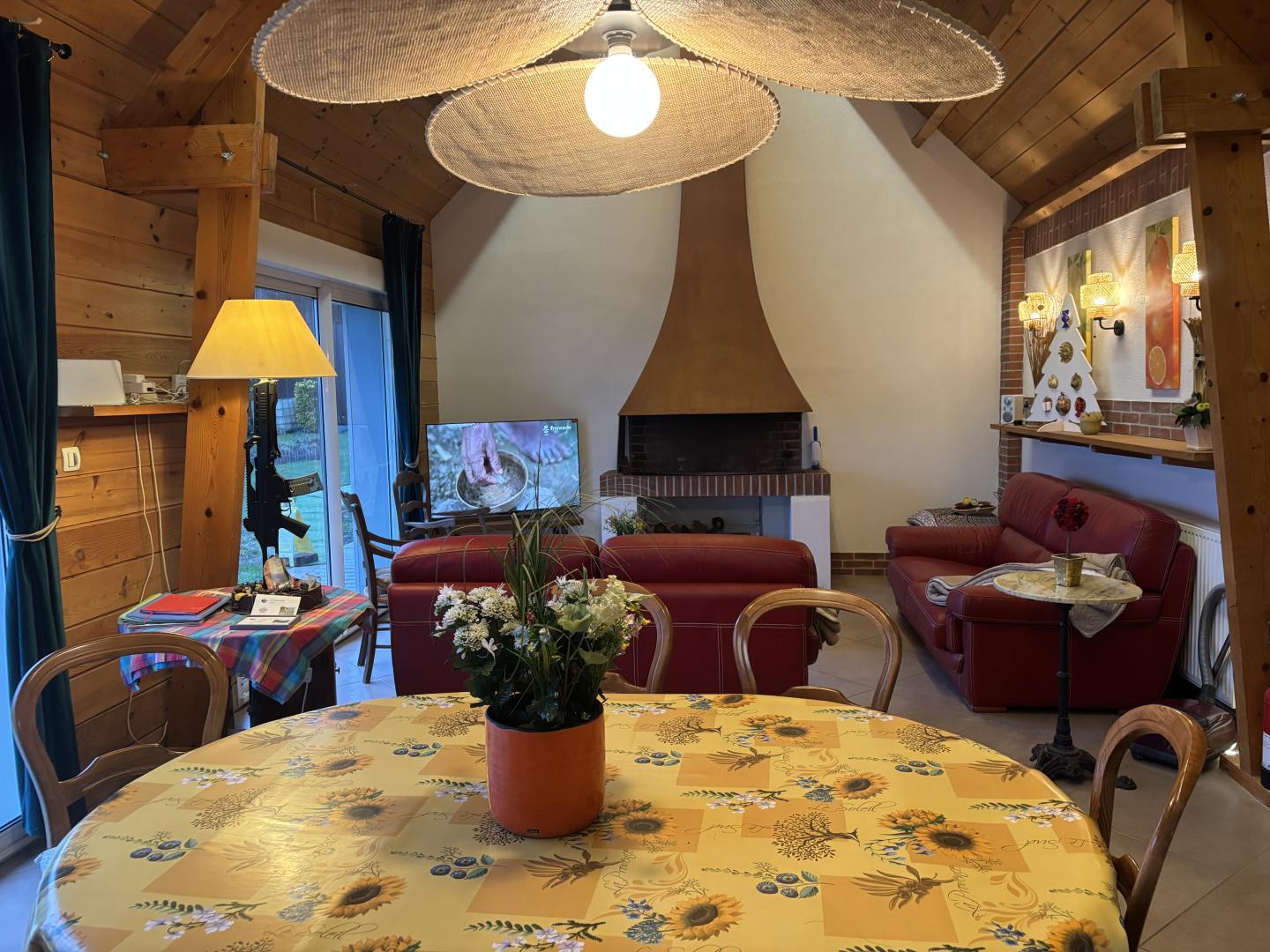 Maison de plain-pied de 75 m², située au coeur du village. Jardin privatif et clos (400m²) avec bassin d'agrément sécurisé (profondeur 1m50) et table de pique-nique en bois. Terrasse avec bar, 2 tabourets. Places de parking privatives pour 4 voitures. Rez de chaussée : grande pièce à vivre comprenant salle à manger et salon avec TV écran plat 102 cm et cheminée à foyer ouvert. Cuisine (plaque avec 3 feux vitrocéramiques, four, plancha au gaz sous hotte aspirante, micro-ondes, lave-vaisselle) Salle d'eau avec douche italienne en 120x80 et WC. Sur demi-étage : 1 chambre (2 lits 1 personne en 90x190). 1 chambre (1 lit 2 personnes en 140x190) avec mezzanine comprenant 1 couchage d'appoint pour 1 personne (80x190). Salle de bains avec baignoire, douche en 70x70 et WC. Sous-sol : lave-linge séchant. Lits faits à l'arrivée. Table de ping-pong, divers jeux de sociétés. Bois payant. Wifi (débit fibre). Lit parapluie. Pour le même gîte avec capacité 6 personnes, voir la référence G022411.