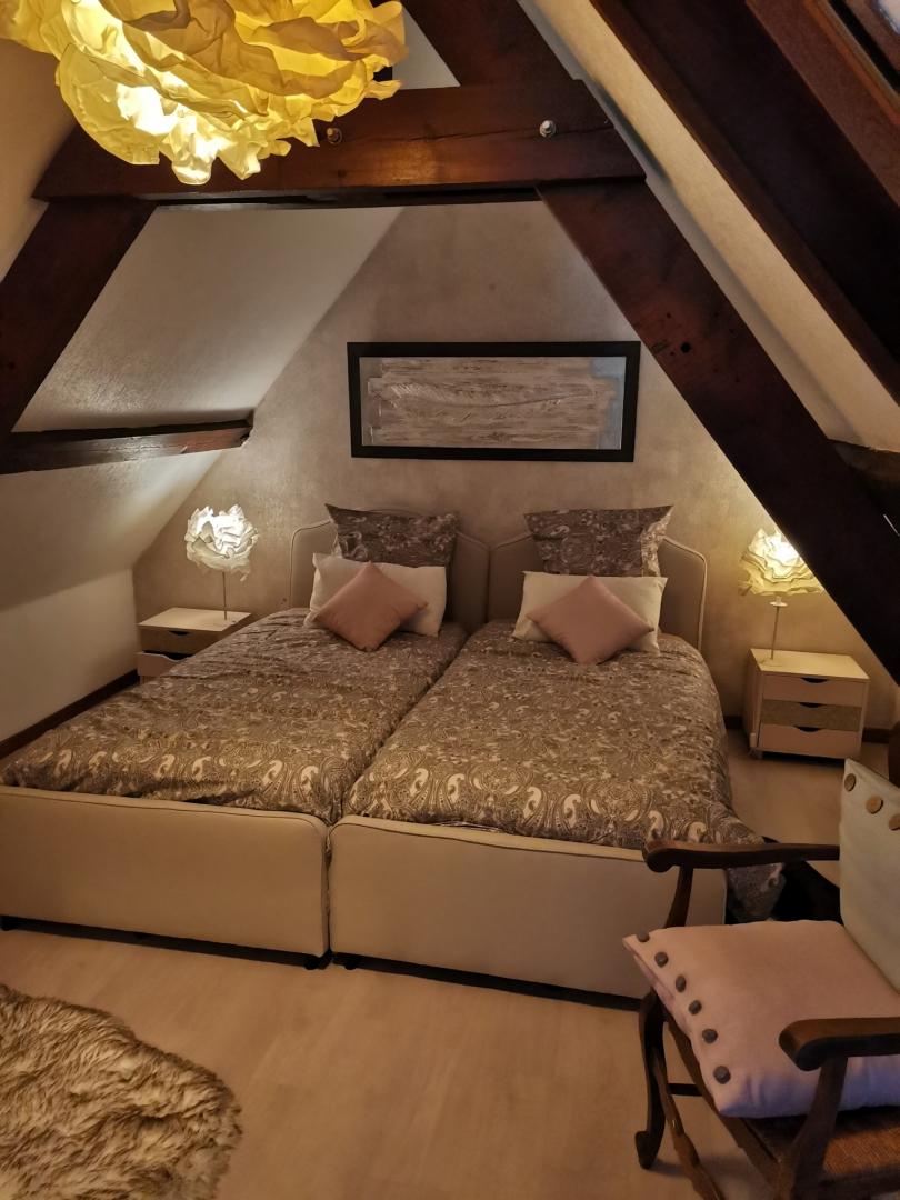 Maison de 52 m² dans le village. Terrain clos privatif arboré et clôturé de 700 m². Parking clos privatif et garage pour 2 voitures à 12 mètres du gîte. Terrain équipé de jeux enfants dans le village à 200 mètres). Rez-de-chaussée : Cuisine (plaque avec 4 feux à induction, lave-vaisselle, four, four micro-ondes, hotte aspirante, etc) et coin repas. Salon avec canapé 2 places et 2 fauteuils, TV écran plat 80 cm. Salle d'eau avec WC. Escalier en colimaçon. A l'étage : 1 chambre palière en 2 parties séparées (2 lits en 80x190 modulables en 1 lit en 160x190 et 2 lits en 90x190). Chauffage électrique. Bois payant. Téléphone gratuit pour n° fixe en Europe. Mise à disposition d'un lit bébé et chaise haute. Lecteur DVD et lecteur CD. Internet avec débit fibre. SEUL UN ANIMAL DE PETITE TAILLE EST ACCEPTÉ DANS L'HÉBERGEMENT.