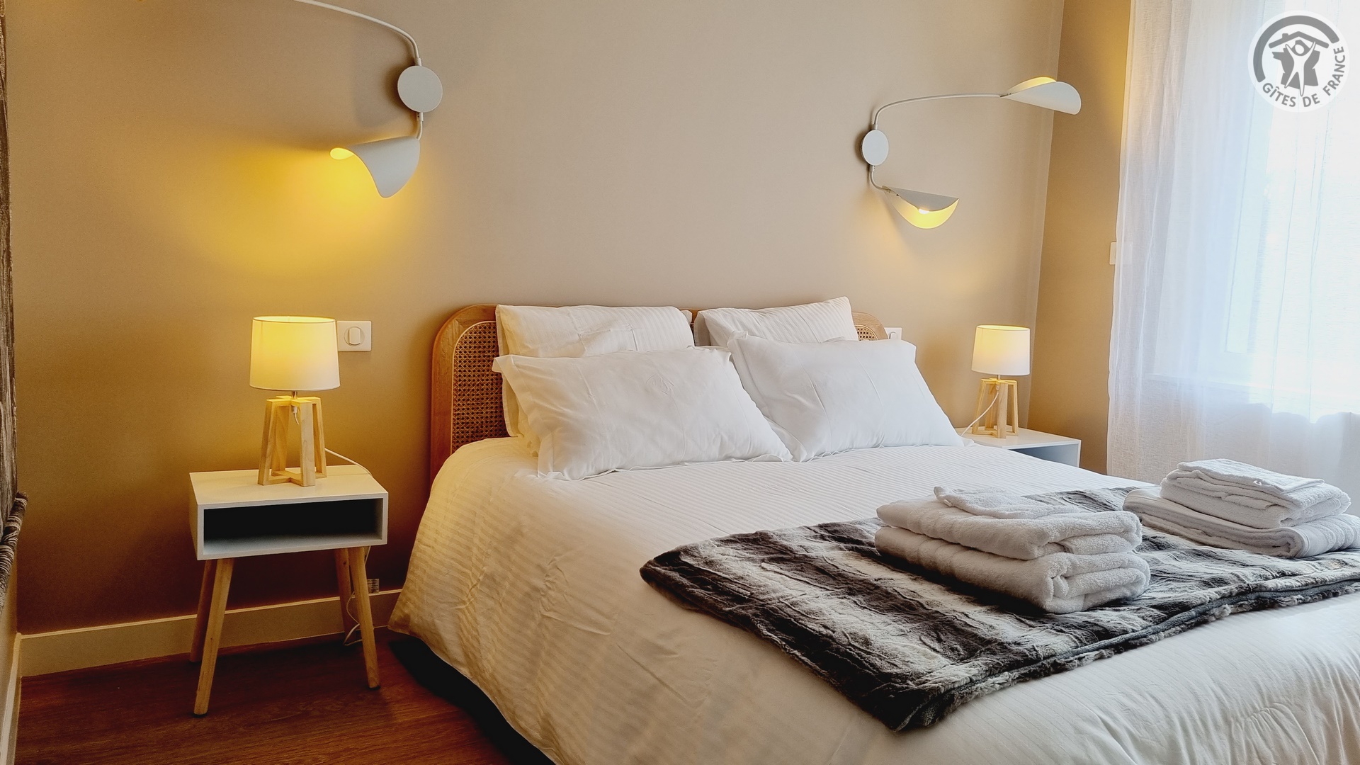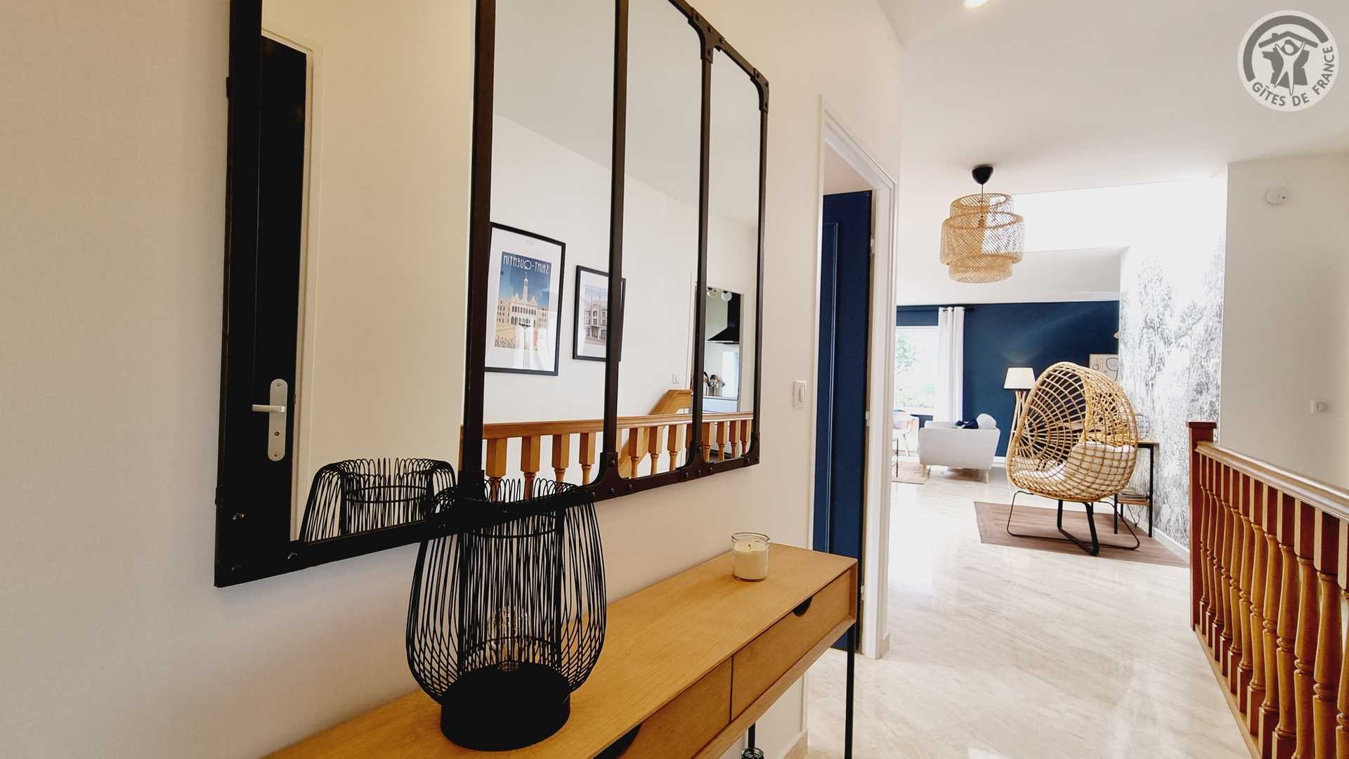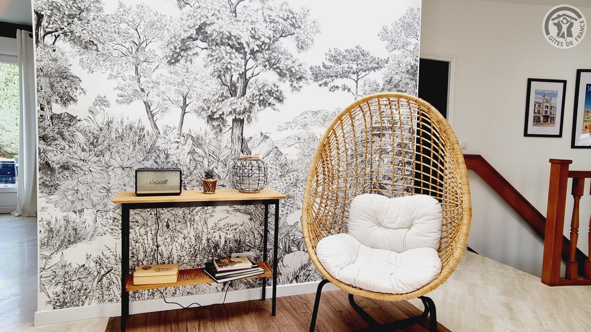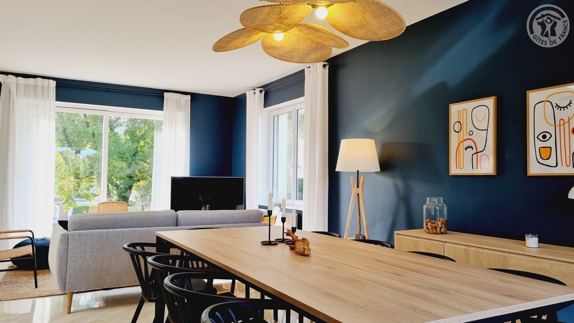 Maison indépendante de plain-pied (125 m²) des années 70, au centre du village, avec vue privilégiée sur les vignes. Quelques marches pour accéder à l'entrée à l'avant mais accessible à l'arrière sans marches, côté parking. Terrasse 74 m². Jardin non clos 2000 m². Prise Green'up pour la recharge des voitures électriques (coût de recharge non compris dans le prix de location). Cuisine équipée. Salon/salle à manger de 58 m² avec TV (139 cm) connectée. Salle d'eau avec douche italienne (150x90) et 2 vasques. WC indépendant avec lave-mains. Chambre 1 : 1 lit 140x200, Chambre 2 : 1 lit 160x200. Chambre 3 : 1 lit 160x200. Salle d'eau : douche italienne (140x80) et vasque. Sous-sol : garage 1 voiture, espace jeux : baby-foot, table de ping-pong, jeu de fléchettes électronique. Espace de remise en forme : 1 vélo d'appartement, 1 vélo elliptique et 1 tapis de course. Cheminée à foyer ouvert (uniquement avec des bûches densifiées, 6 bûches fournies à l'arrivée, au-delà payant).