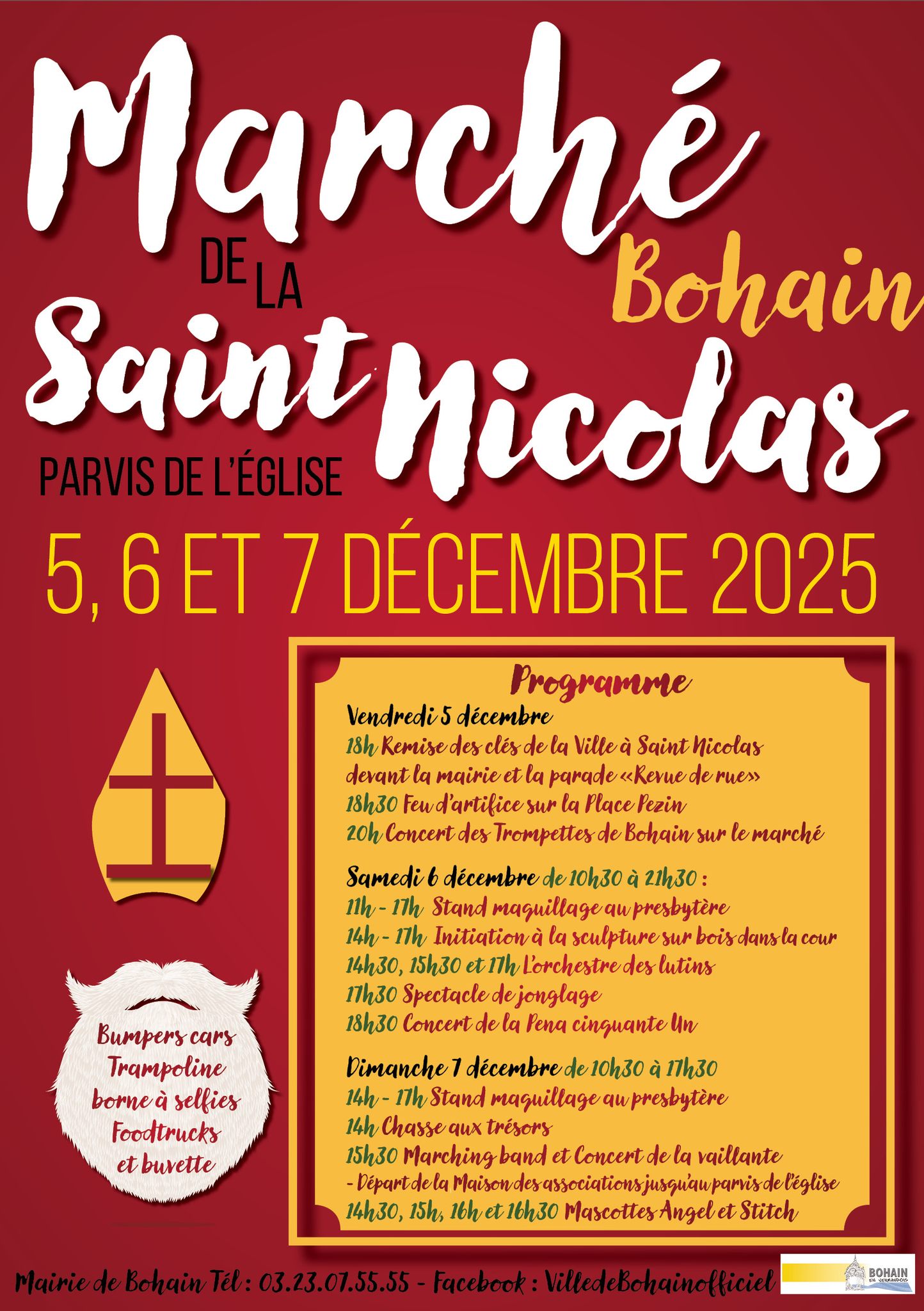 Venez profiter du marché de la Saint-Nicolas qui aura lieu les 5, 6 et 7 décembre 2025 à Bohain en Vermandois !