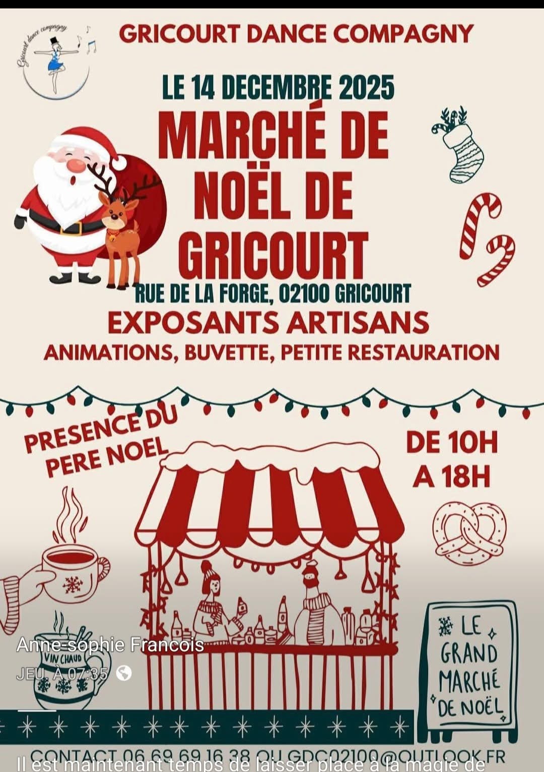 L'association Gricourt Dance Compagny organise un marché de Noël le dimanche 14 décembre 2025 de 10h à 18h.